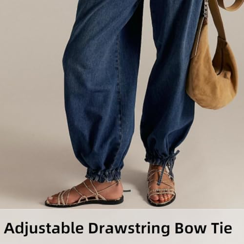 Lotus Tube Jeans for Women,Mid Rise Lotus Ruffle Jeans,Casual Loose Wide Leg Denims with Adjustable Drawstring 6