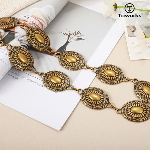 • Western Chain Belt---This women metal choncho chain belt is well made, carved with ancient patterns.This concho belt for women is really adds western flair to any outfit. Super cute boho cowgirl waist chain belt can elevate your look, you will get compliments.