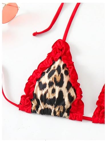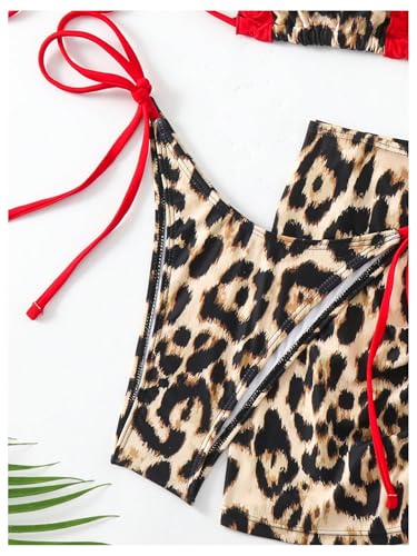 • Features: 3 piece swimsuits for women, cheetah print, colorblock, ruffle trim, triangle cup, halter neck, sleeveless, spaghetti strap, tie back, backless, with drawstring beach skirt