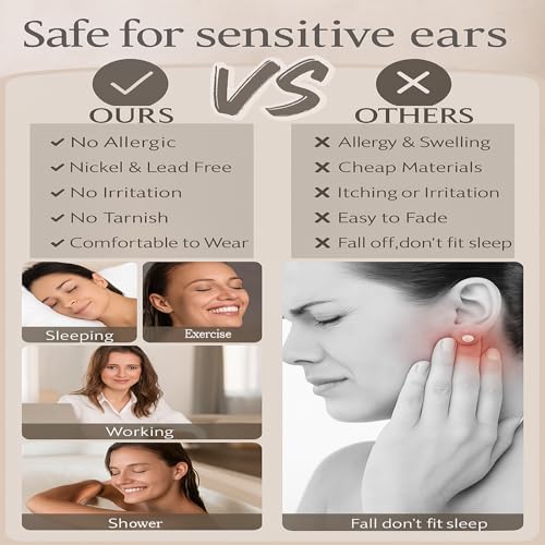 • HYPOALLERGENIC & SAFE – Made of S925 sterling silver plated with 14K gold, nickel-free and skin-friendly for all-day comfort, even while sleeping.