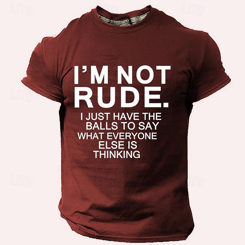 HOT ! Men's Funny Short Sleeve Graphic T-Shirt with "I'm Not Rude. I Just Have The Balls To Say What Everyone Else Is Thinking" Slogan.