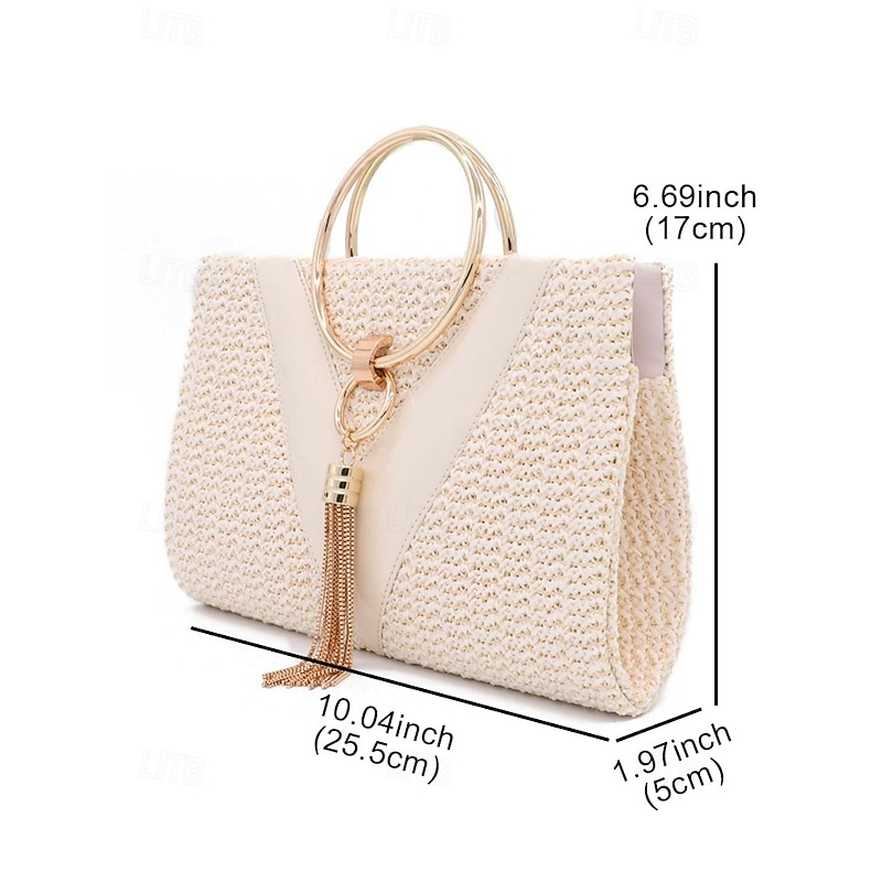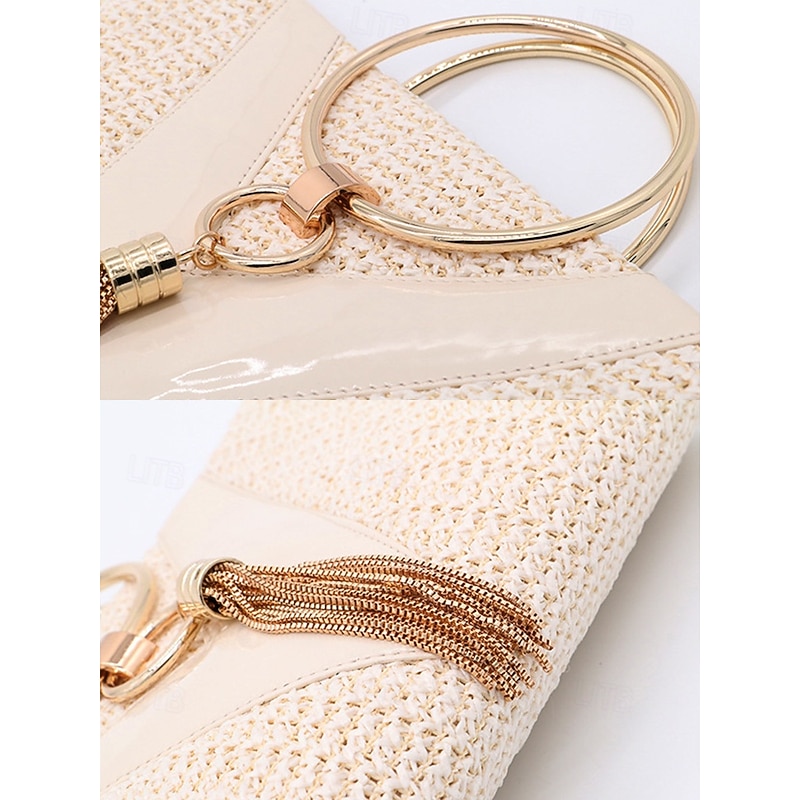 Women's Straw Clutch Purse – Elegant Woven Handbag with Gold Ring Handle & Tassel, Boho Chic Evening Bag for Summer, Beach, Vacation, Wedding & Party 12