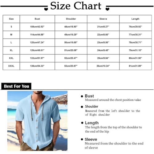 Mens Cotton Linen Hoodies Lightweight Button Up Long Sleeve Shirts with Hood Stylish Thin UPF 50+ Sun Protection Shirt 6