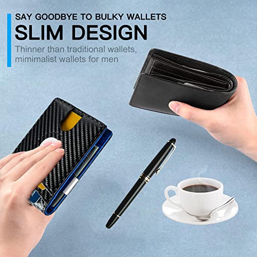 Huztencor AirTag Wallet, Mens Slim Wallet with Money Clip RFID Blocking Bifold Credit Card Holder Case for Apple Air Tag Carbon Fiber Black and Blue 2