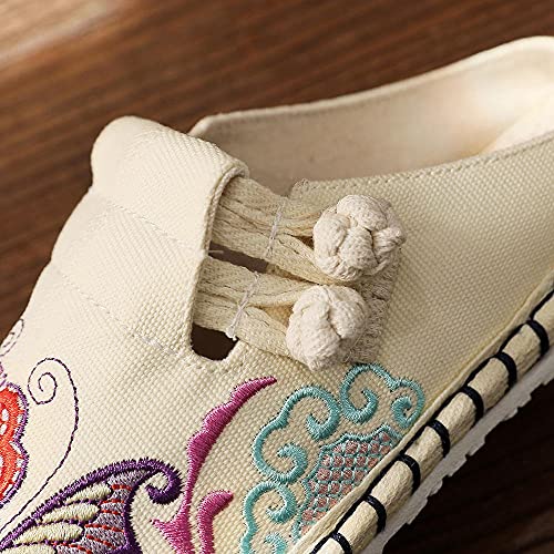 HOT ! Flower Embroidered Women Canvas Espadrilles Flat Slippers Retro Ladies Comfortable Close Toe Shoes Embroidered Shoes (Color : Red Size : 5) (Red 9)