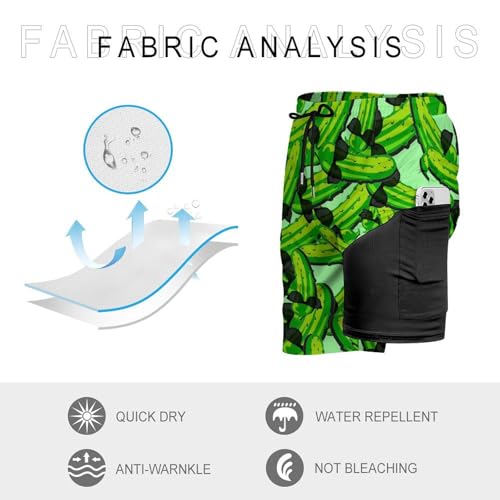 • Materials: 95% Polyester And 5% Spandex. This Mens Swimming Shorts With A Built-In Compression Liner Is Soft, Stretchy, Lightweight, Elastic, Breathable And Comfortable. The Swimwear Are Much Safer Than 1 Layer Shorts.