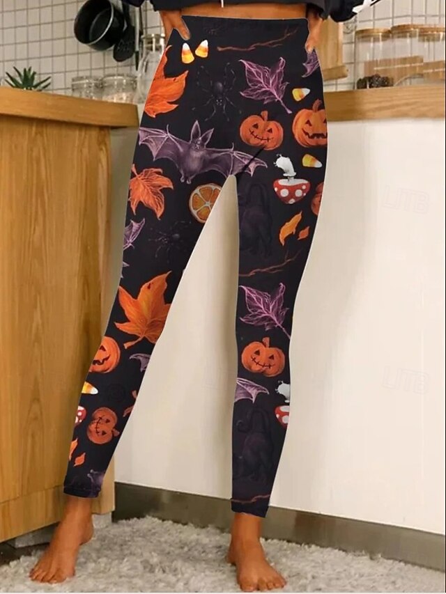 More information about Women's Leggings Vacation Vintage Fashion Ankle-Length High WaistPantsHalloween Graphic Pumpkin Printing Soft Breathable Stretchy Formal Outdoor Vacation Black Purple Orange ash-colored Spring Fall
