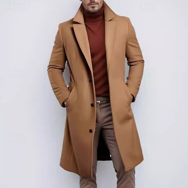 More information about Men's Trench Coat Long Trench Coat Daily Vacation Fall & Winter Polyester Thermal Warm Outerwear Clothing Apparel Fashion Classic Plain Pocket Lapel Single Breasted