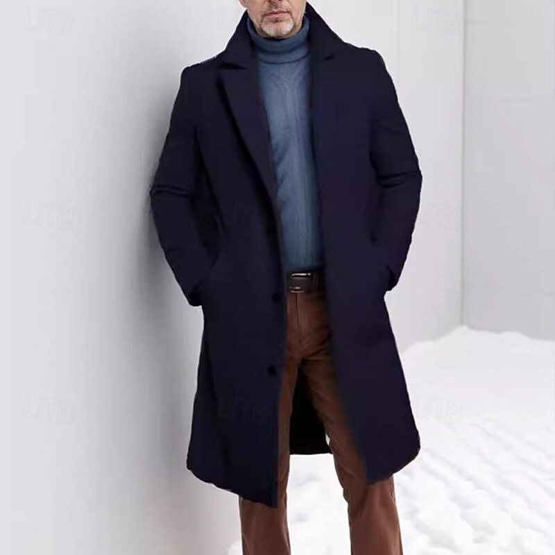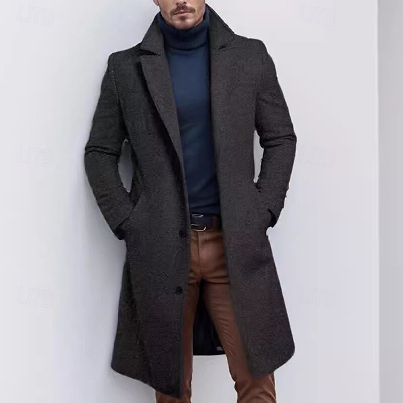 Men's Trench Coat Long Trench Coat Daily Vacation Fall & Winter Polyester Thermal Warm Outerwear Clothing Apparel Fashion Classic Plain Pocket Lapel Single Breasted 1