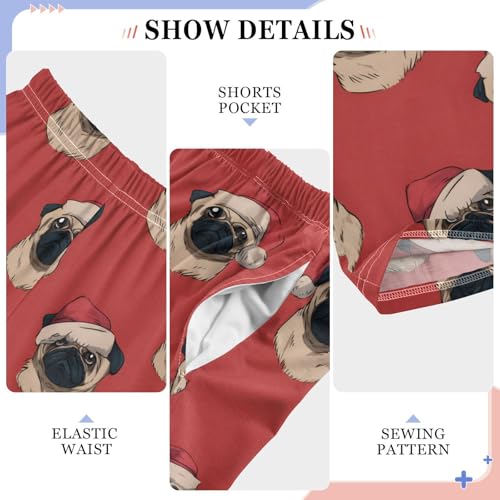 Christmas Pajama Pants Dog Santa Hat Pattern Long Sleep Pants Lounge Bottoms 7