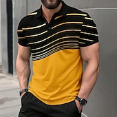 More information about Men's Geometic Line Polo Short Sleeve Polo Shirts Collared Shirts Casual Athleisure Buttons Summer Yellow