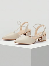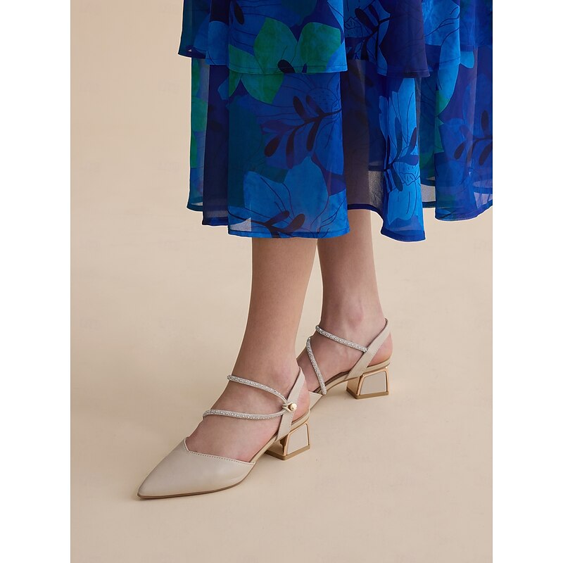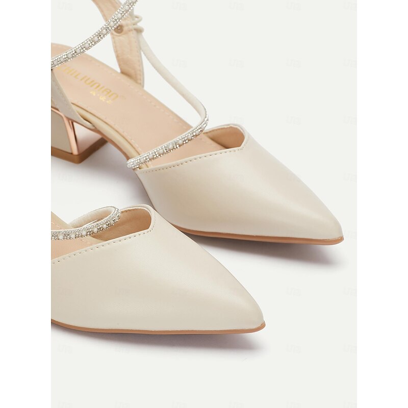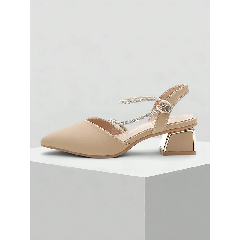 More information about Elegant Women's Slingback Pointed Toe Heels with Rhinestone Strap - Beige Mid-Heel Shoes for Weddings and Parties