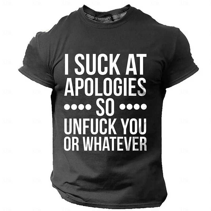 Highlights [Fabric] : Crafted from high-quality polyester, this men's t-shirt ensures a light and breathable feel, perfect for spring and summer. The fabric boasts micro-elastic properties, offering comfort and ease of movement throughout the day. [Fit] : Designed with a regular fit, this t-shirt complements a variety of body types, offering both style and comfort. Its classic crew neck and short sleeves make it an ideal choice for casual, everyday wear. [Design Highlights] : The t-shirt features a striking 3D graphic print with bold lettering on the front, adding a touch of personality and humor to your outfit. This eye-catching design makes it a standout piece, perfect for those looking to make a unique fashion statement. [Occasions] : Suitable for a variety of occasions including outdoor sports, holidays, and casual outings. Whether you're heading out for a day of adventure or a relaxed gathering with friends, this t-shirt adds a stylish and edgy flair to your ensemble. [Size Range] : Available in sizes S, M, L, XL, XXL, and XXXL, ensuring a suitable fit for a wide range of body types. Choose the size that best complements your style for maximum comfort and impact.