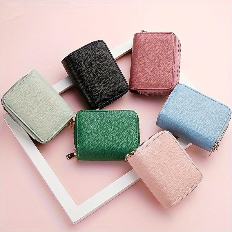 HOT ! Compact Dual-Zipper Women's Wallet | Light Green Textured Credit Card Holder & Coin Purse | Golden Zippers, Available in Pink, Emerald, Blue, Black