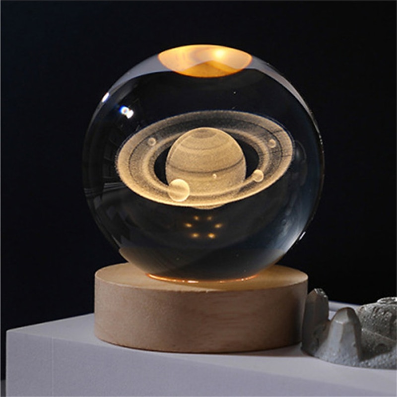 Glowing Planetary Galaxy Crystal Ball Night Lights USB Power Warm White Bedside Light Christmas Kid Gift Night Lamp 1
