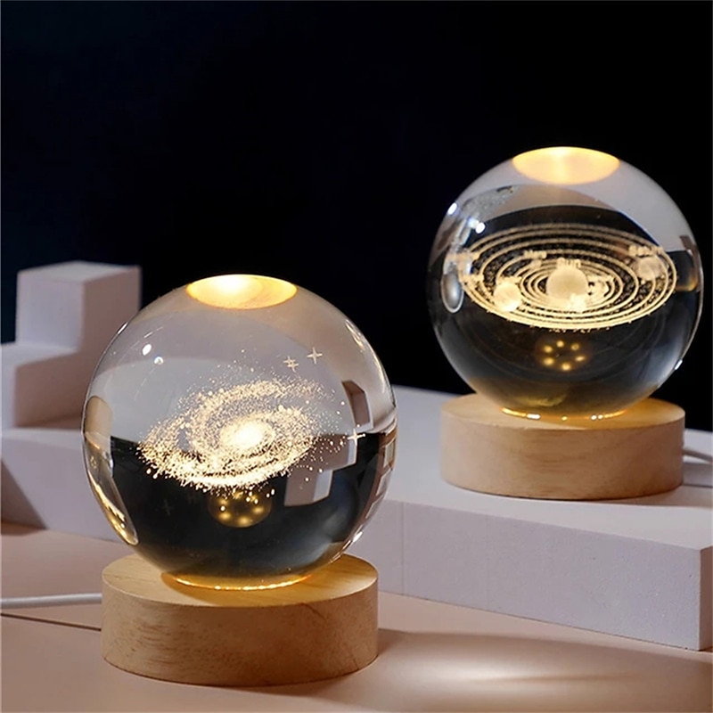 Glowing Planetary Galaxy Crystal Ball Night Lights USB Power Warm White Bedside Light Christmas Kid Gift Night Lamp 11