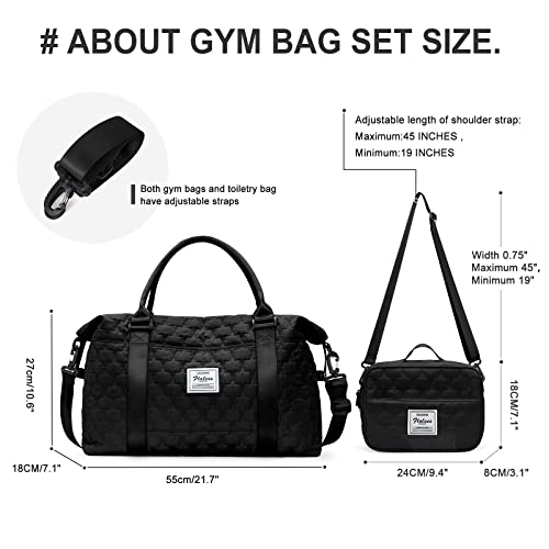 HOT ! Sport Gym Duffel Bags for Women Black Cute Travel Weekender Tote Bag with Toiletry Bag Carry On Bag Overnight Bag with Wet Pocket Hospital Bag for Labor and Delivery
