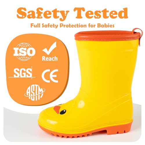 Waterproof Toddler Rain Boots with Protective Cuff & Non-Slip Sole, Yellow Duck Kids Rain Boots, Ideal for Garden, Puddle, and Outdoor Play 6