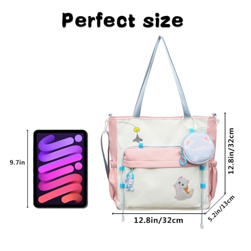 Kawaii Messenger Bag with Cute Accessories Nylon Casual Crossbody Hobo Tote Shoulder Bag Travel Daypacks 6