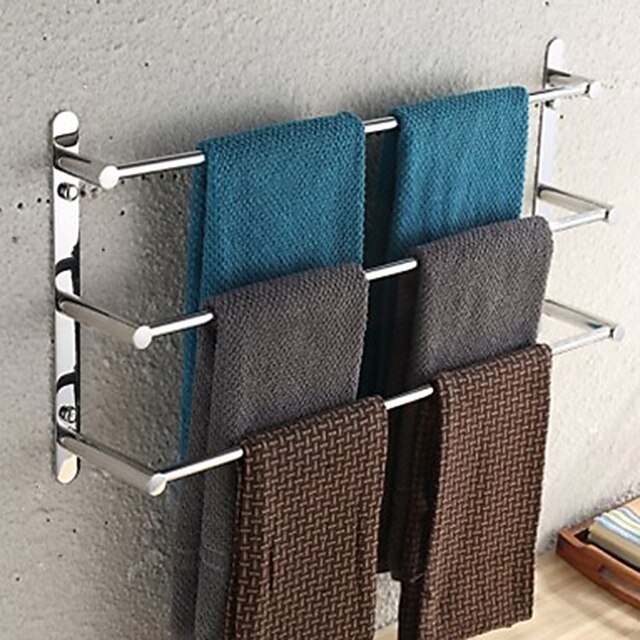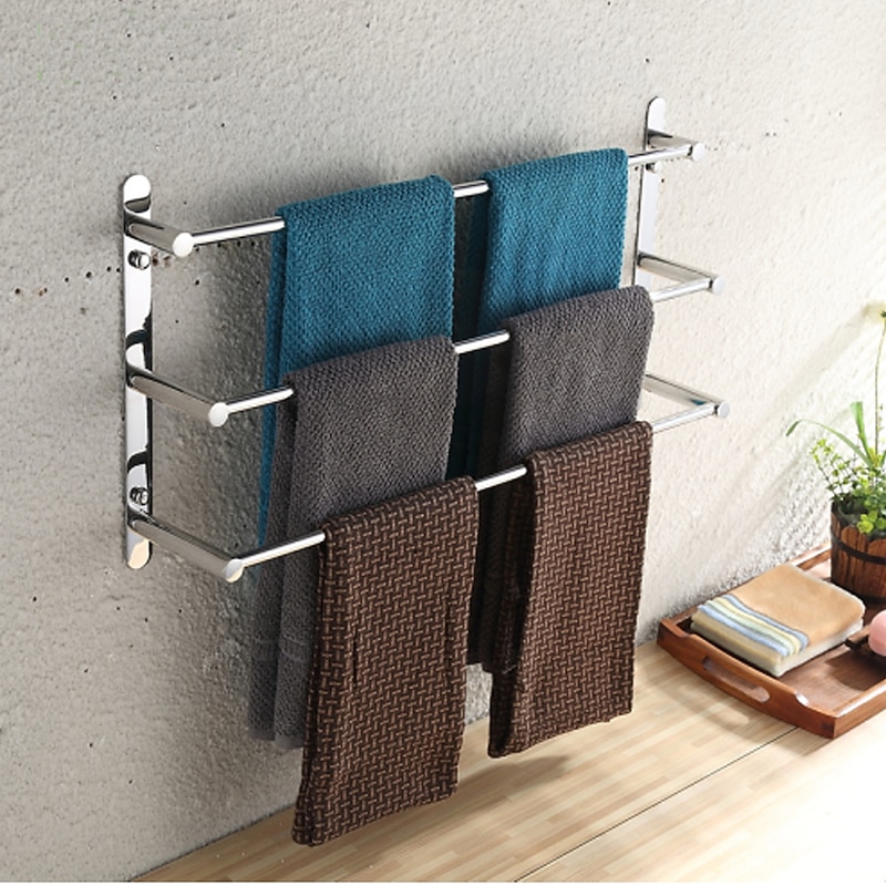 3-Tiers Towel Rack Stainless Steel Bath Towel Bar  Towel Rail Wall Mount Mirror Polished Silvery 60/70cm 3