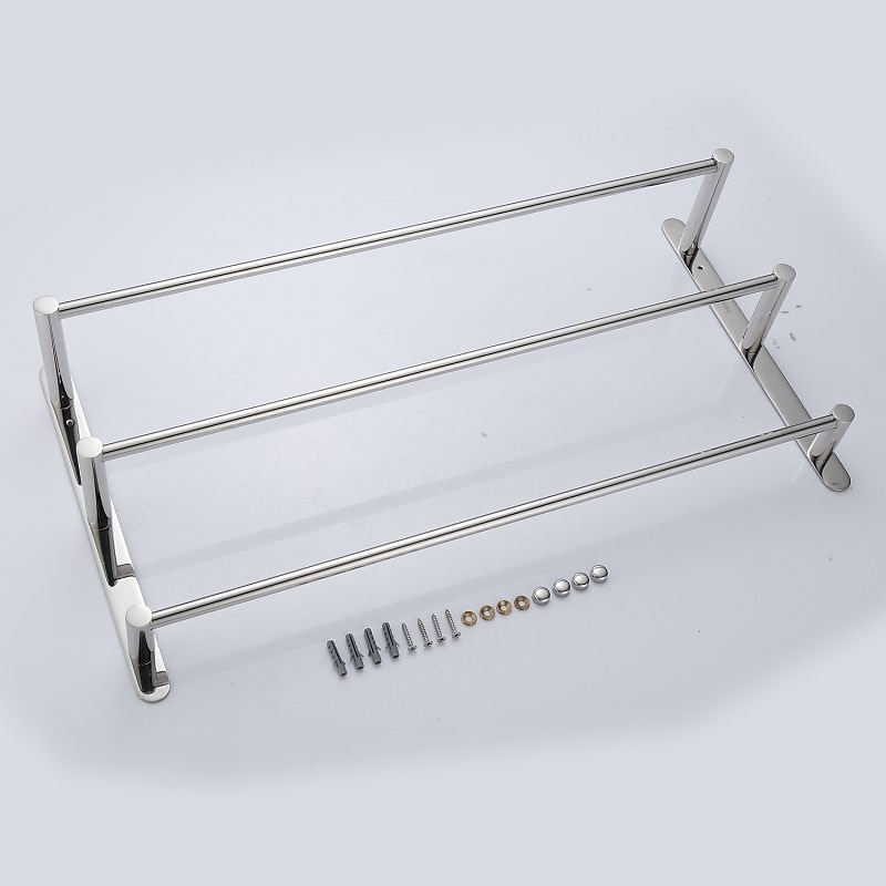 Highlights Introducing our high-quality bathroom hardware made of top-notch metal and processed by expert technology guaranteeing the highest quality. Our towel bar, crafted from 304 stainless steel, passes formal material testing, attesting to its enduring strength and corrosion resistance. With a remarkable durability exceeding 20 years, it features a three-layer pole design and can accommodate larger capacities. Moreover, our towel bar's impressive bearing capacity allows for convenient installation, complete with all necessary accessories for hassle-free mounting. We prioritize the health and safety of your family by ensuring an eco-friendly product. Don't settle for less; opt for our mirror-polished finish product, delivering strong bearing capacity, three-layer pole design, a larger capacity, and a polished-looking finish. Trust that our stainless steel towel bars make for a delightful addition to your bathroom.