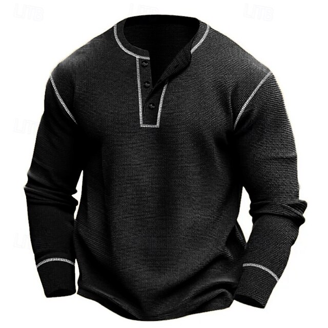 More information about Men's Waffle Tee T Shirt Waffle Henley Shirt Tee Top Long Sleeve Solid Color Daily Casual Street Style Buttons Color Block Crewneck Henley Outdoor Street Causal Spring & Fall Black Green Henley