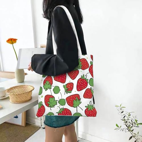 HOT ! Strawberry Pattern Print Polyester Canvas Tote Bag, Worthy Shopping Bag, Ideal For Present And Daily Errands