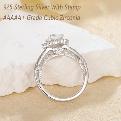 More information about Wuziwen Emerald Cut Engagement Rings for Women Vintage Wedding Ring Cubic Zirconia 925 Sterling Silver Solitaire