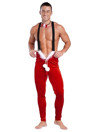 Sexy Santa Outfit for Men Soft Velvet Santa Claus One Piece Sleeveless Pajamas Jumpsuits Nightwear 6