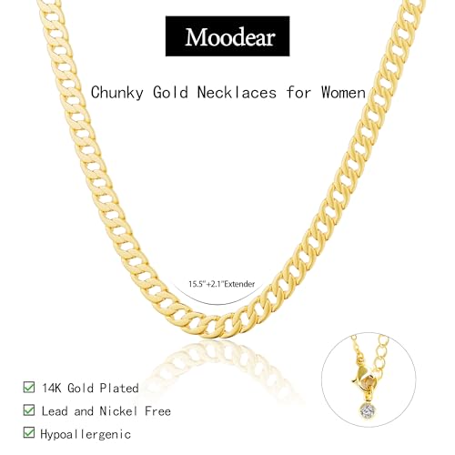Moodear Gold Necklace for Women 14K Dainty Chunky Gold/Sliver Chain Necklace Cuban Link Paperclip Chain Choker Toggle Clasp Layered Pearl Pendent Necklace for Women Trendy Fashion Jewelry 4