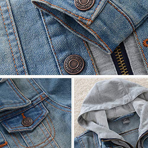 ASHER FASHION Boys Denim Vest Single-Breasted Hoodie Child Long Sleeve Jacket Jeans Outerwear 6