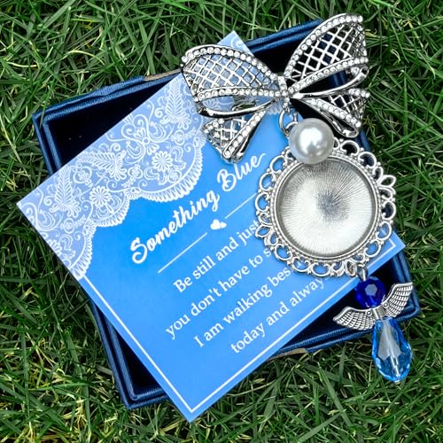 Something Blue Bridal Bouquet Charm Wedding Memorial Bride Shower Gift Wedding Bouquet Memorial for Mother Father DIY Photo Keepsake with Angel Bow Photo Locket 7
