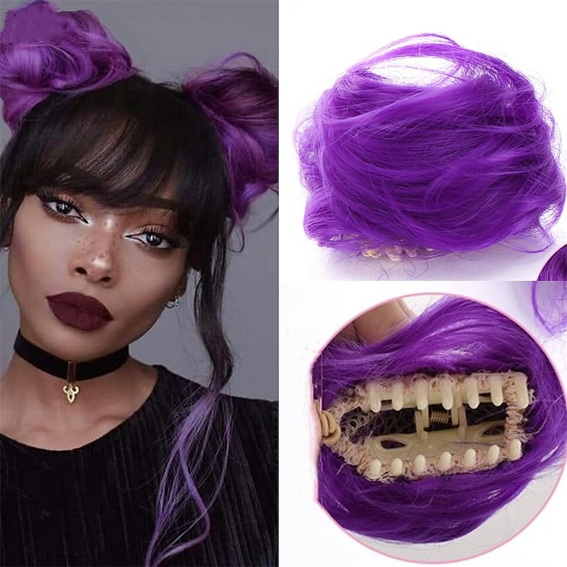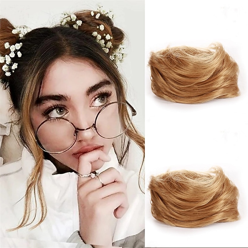 2Pcs Mini Claw Fake Space Hair Bun Clip in Messy Bun Synthetic Hair Chignon Donut Hair Bun Extensions Wig Accessory Ponytail Updo Hair Pieces for Women Girls and Kids 29