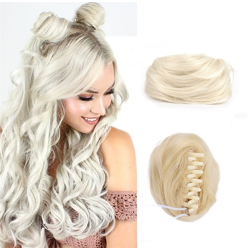 2Pcs Mini Claw Fake Space Hair Bun Clip in Messy Bun Synthetic Hair Chignon Donut Hair Bun Extensions Wig Accessory Ponytail Updo Hair Pieces for Women Girls and Kids 28