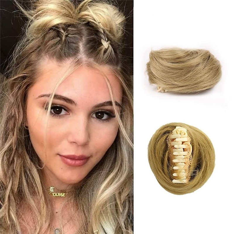 2Pcs Mini Claw Fake Space Hair Bun Clip in Messy Bun Synthetic Hair Chignon Donut Hair Bun Extensions Wig Accessory Ponytail Updo Hair Pieces for Women Girls and Kids 19