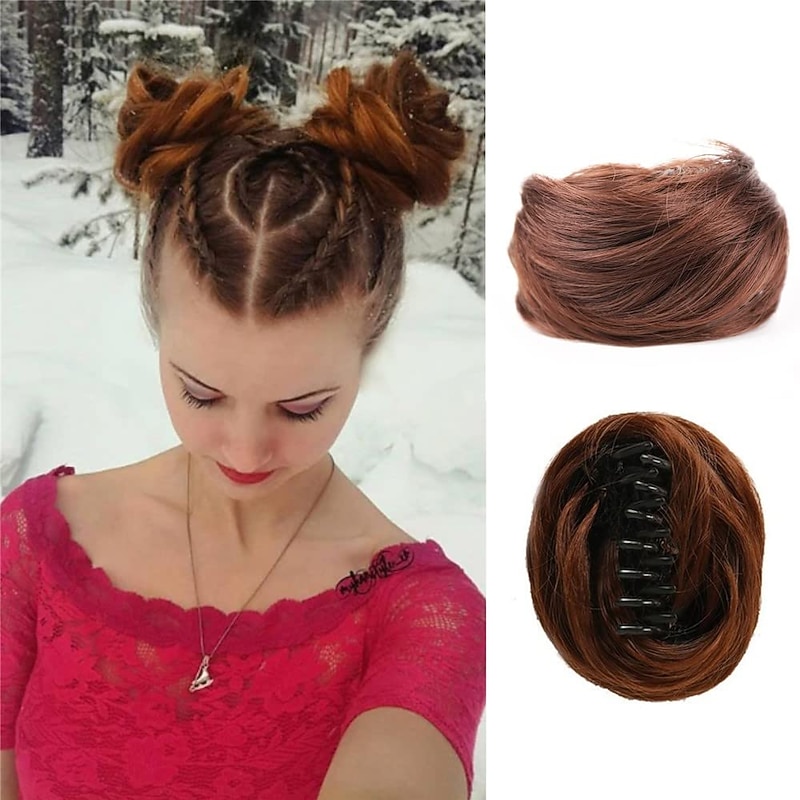 2Pcs Mini Claw Fake Space Hair Bun Clip in Messy Bun Synthetic Hair Chignon Donut Hair Bun Extensions Wig Accessory Ponytail Updo Hair Pieces for Women Girls and Kids 36