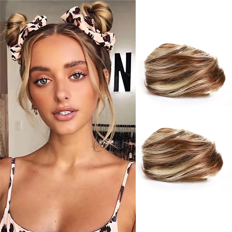 2Pcs Mini Claw Fake Space Hair Bun Clip in Messy Bun Synthetic Hair Chignon Donut Hair Bun Extensions Wig Accessory Ponytail Updo Hair Pieces for Women Girls and Kids 27