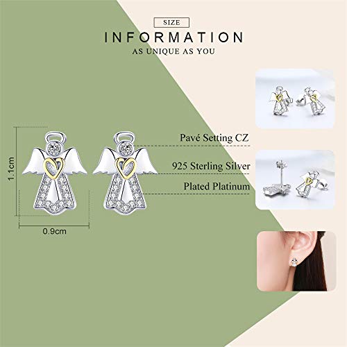 CZ Angel Stud Earrings for Women 925 Sterling Silver Cubic Zirconia Small Cute Crystal Gold Heart Studs Tragus Post Hypoallergenic Lovely Jewelry Gift for Daughter Niece 3