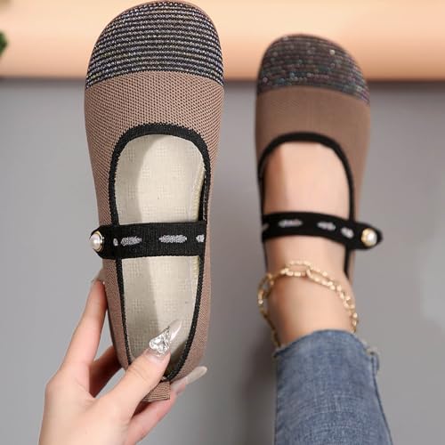 Women's Mary Jane Shoes Ballet with Buckle Strap Soft Work Dress Ballerina Walking Shoes Non Slip Casual Shoes 6