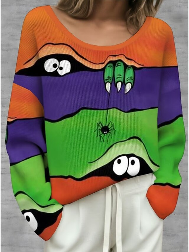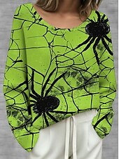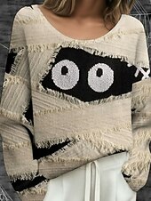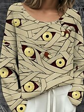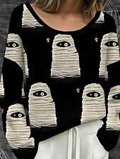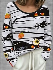 More information about Halloween Women's Plus Size T Shirt Color Gradient Vintage Stylish Classic Long Sleeve Crew Neck Regular Tops Daily Going out Weekend Print Black Orange Green off-white Khaki Spring Fall