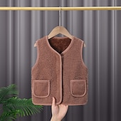Kids Girls' Vest Coat Solid Color Active School Cotton Coat Outerwear 7-13 Years Spring dark brown off white Pink 3