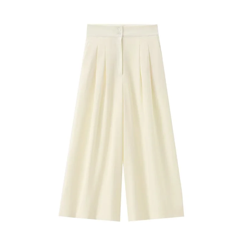 MUJER 2025 Wide Leg Pants Sets for Women 2 Pieces Sleeveless Vest Top Woman Pleated Casual Trousers Sets Two Piece Outfits Woman
