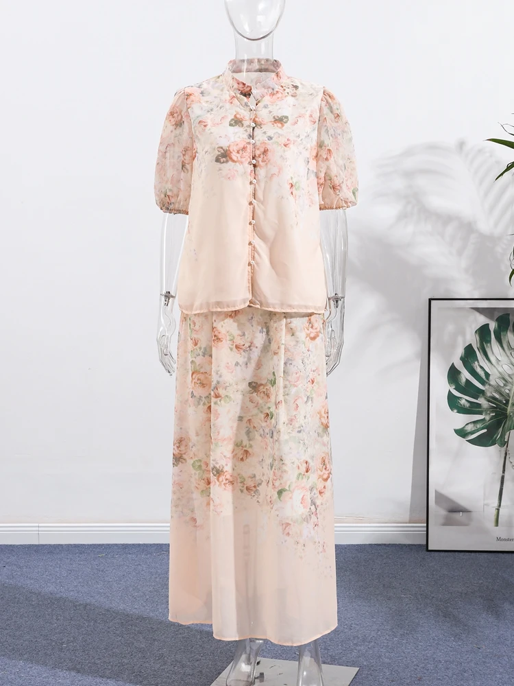 This two - piece set isn’t just clothes—it’s a “romantic mood” in pastel pink. The Chinese - collar top + flowy skirt blend vintage charm with modern softness. Perfect for brunches, garden dates, or any moment you want to feel effortlessly pretty.