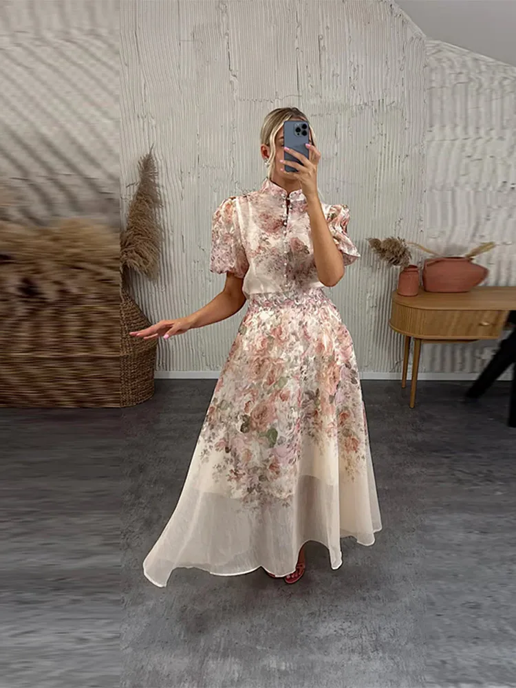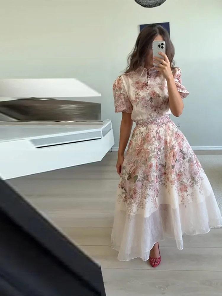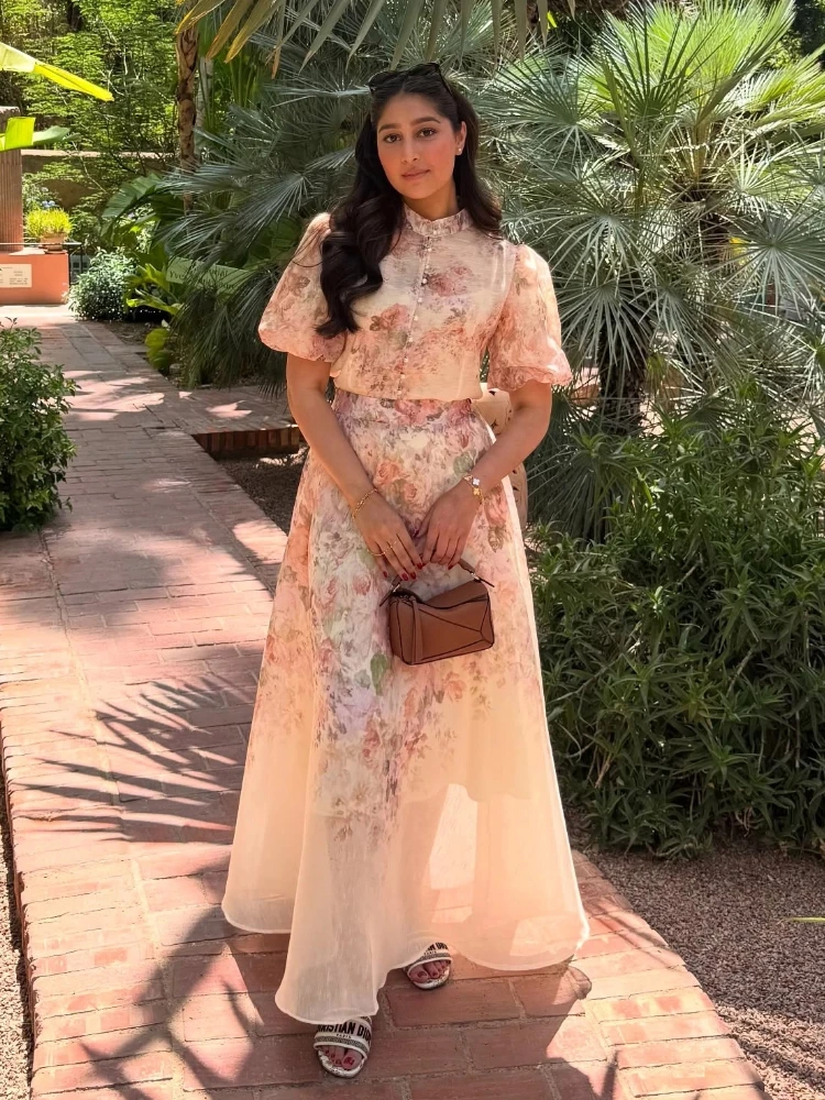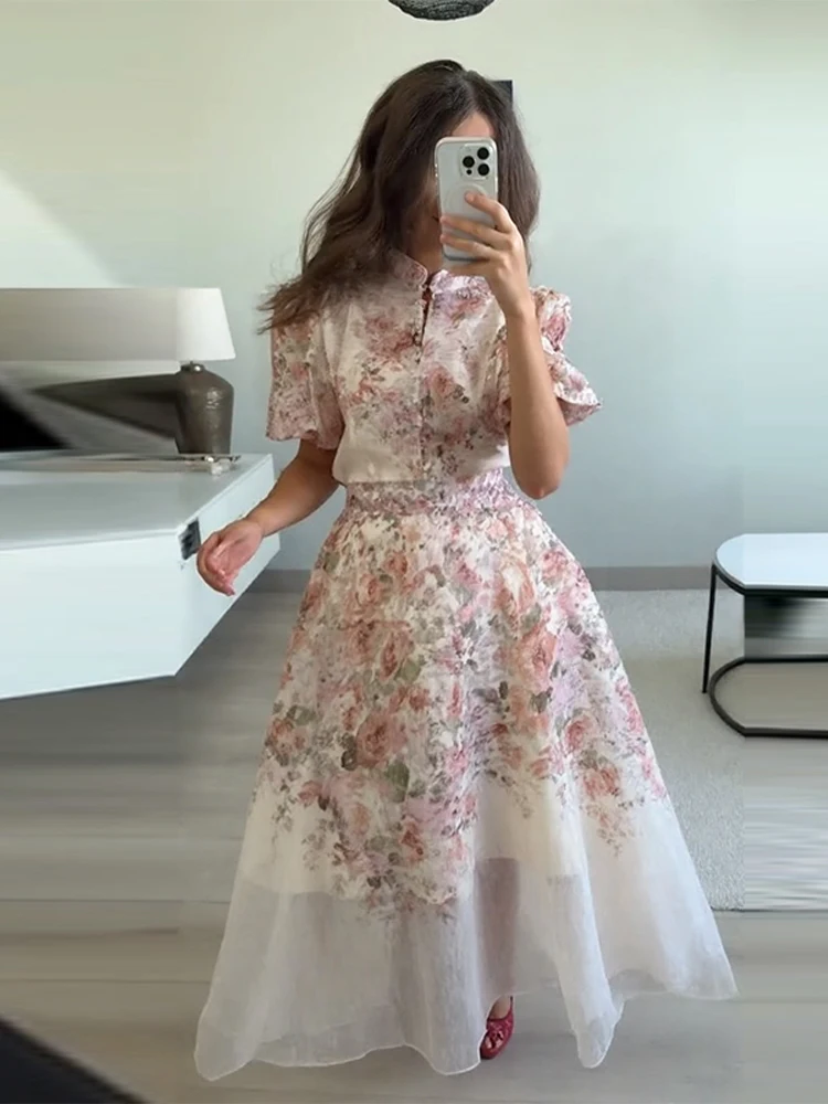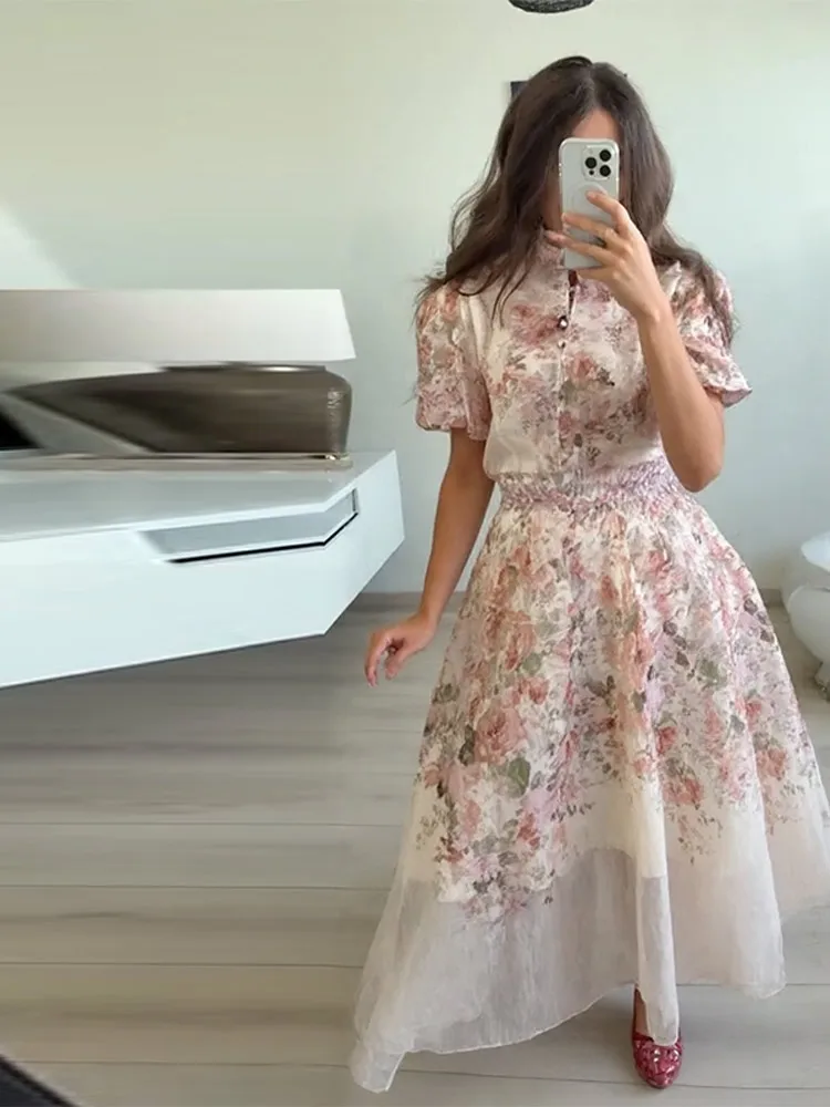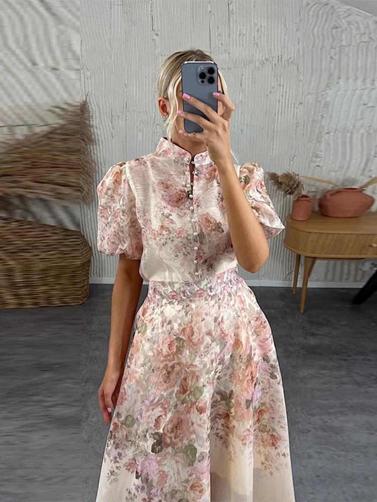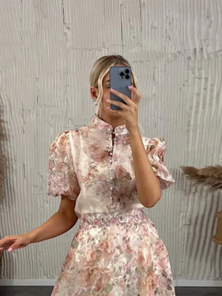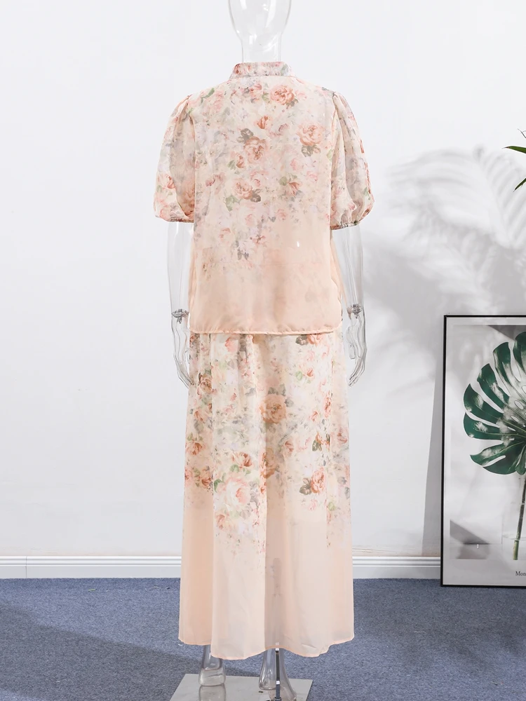 Model Number: Print Puff Short Sleeve Top Skirt Suits For Women New Partywear