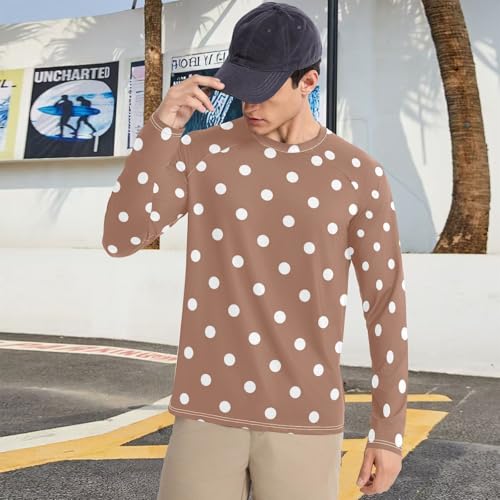 HOT ! Polka Dots Brown Mid Century Modern Men's Rash Guard Classic Crew Neck Long Sleeve Sun Shirt for Men Long Sleeve Hiking