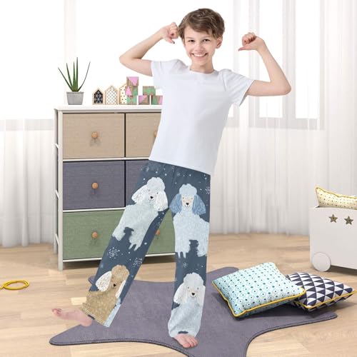 Poodle Snowflakes Boys Long Pants Soft Trousers Elastic Waist Kids Lounge Bottoms with Pockets S-XL 6