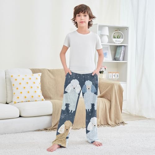 Poodle Snowflakes Boys Long Pants Soft Trousers Elastic Waist Kids Lounge Bottoms with Pockets S-XL 4