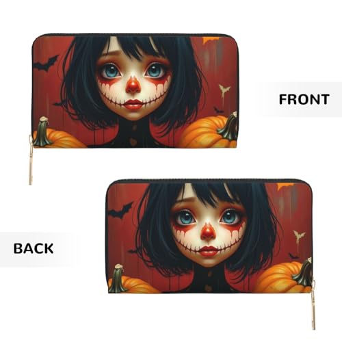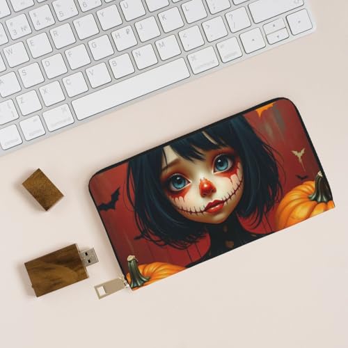 HOT ! Wallet Women - Gothic Orange Pumpkin Print Leather Wallet for Women with Zipper, Cute Bifold Long Ladies Wallets