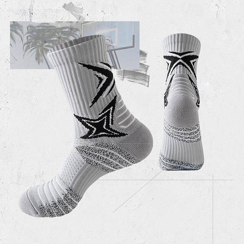 : Boasting a bold color block pattern, the socks sport dynamic star and arrow motifs in black and white, giving them a sporty and fashionable edge. Reinforced heels and toes add durability and cushioning to withstand regular usage.
