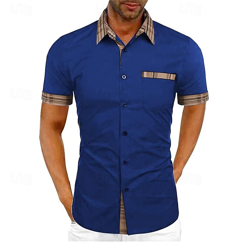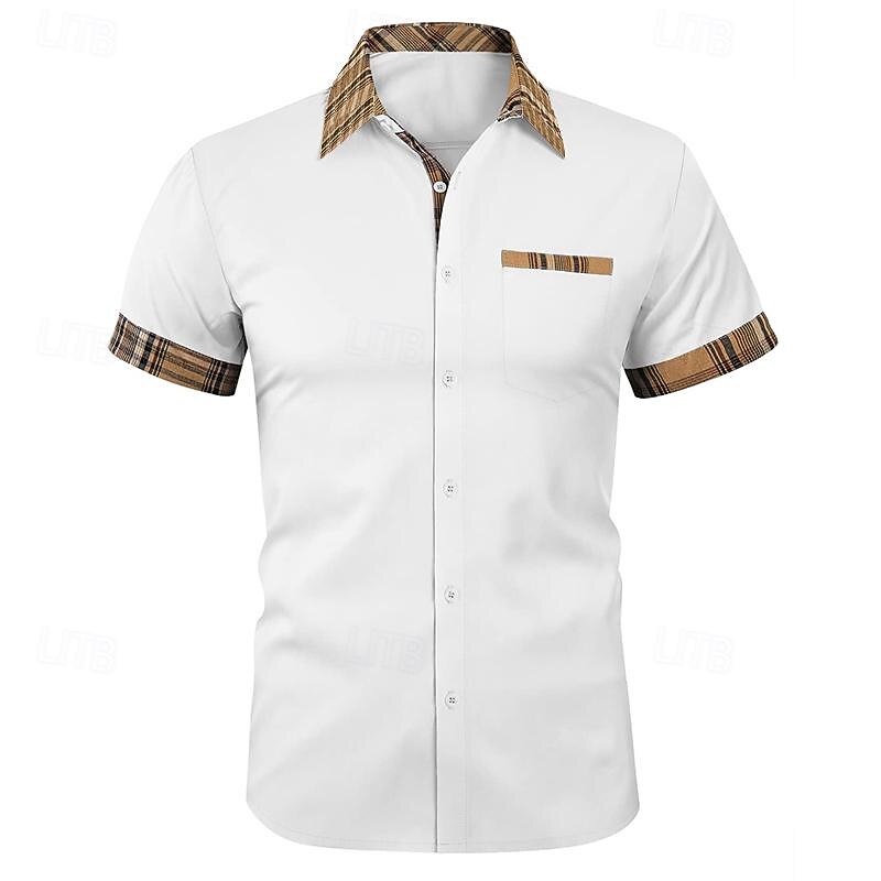 Men's Shirt Summer Shirt Button Up Shirt Black White Pink Red Purple Short Sleeve Color Block Plaid / Check Turndown Street Casual Button-Down Clothing Apparel Cotton Cotton Blend Sports Fashion 15